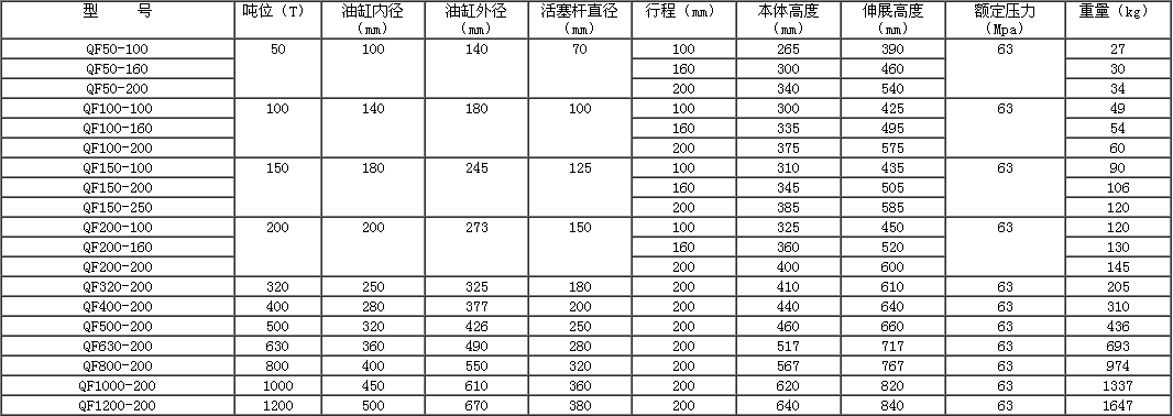 QF系列雙作用大噸位千斤頂 詳細(xì)參數(shù)